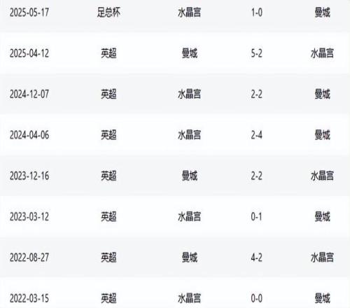上一篇: 曼城客场对水晶宫11场不败,上次输球追溯到2015年4月